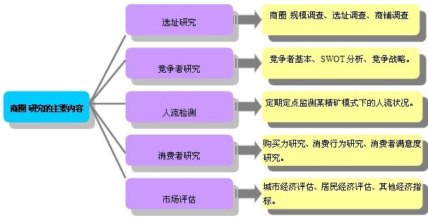 商圈是一個地理概念。從行業(yè)角度講,不同業(yè)種和業(yè)態(tài)零售業(yè)者在一個相對集中的區(qū)域從事經(jīng)營活動,這個區(qū)域的范圍就叫商圈。從零售業(yè)者的角度講,商圈即指店鋪能夠有效吸引顧客來店的地理區(qū)域。商圈研究是運用科學(xué)的市場調(diào)研方法,通過調(diào)查分析商圈的商業(yè)生態(tài)構(gòu)成、影響范圍、商業(yè)特點以及影響等因素,為選擇商業(yè)營業(yè)或制定營銷策略提供科學(xué)依據(jù)。