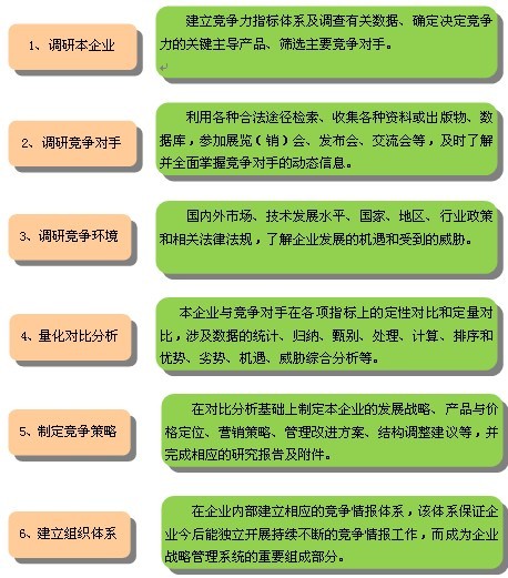 競爭情報研究是關于競爭環境、競爭對手和競爭策略的調查研究,是根據客戶的要求,通過合法手段,針對特定行業的競爭對手企業或潛在競爭情況進行的調研。競爭情報研究是一種系統的、合法的研究活動;是一種產品和服務,研究關注的重點是企業外部那些影響企業戰略和策略決策的因素。